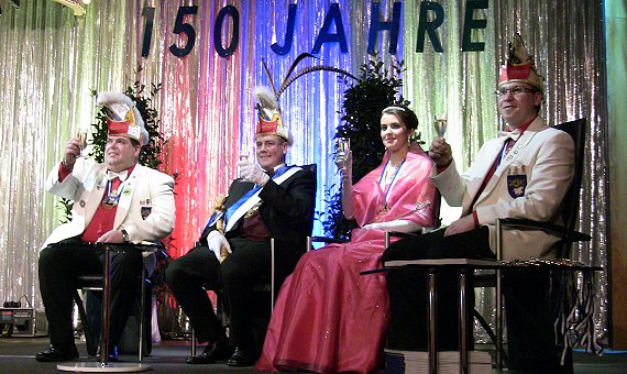 Närrisches Brauchtum seit 150 Jahren Das Jubiläums-Prinzenpaar, umrahmt von KGK-Präsident Udo Geilsdörfer (l.) und Vize Markus Scheurich. (Foto: Claudia Richter)Mehr Bilder (Klicken zum Vergrößern):