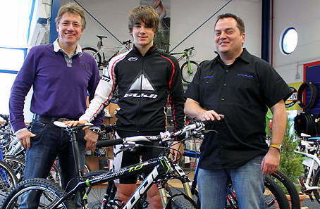 Sowohl Sporthausinhaber Uwe Emig als auch H. Wenzel wünschtem dem Biker für die kommende Saison viel Erfolg.