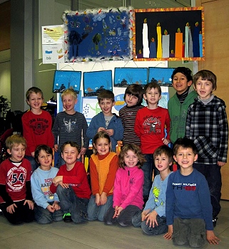 Kleine Künstler stellen aus (Foto: privat)(bro) (sch) Mit den Elementen Erde, Feuer, Luft und Wasser beschäftigten sich die baldigen Schulanfänger des evangelischen Kindergartens Regenbogen bei ihren Mal- und Bastelarbeiten.