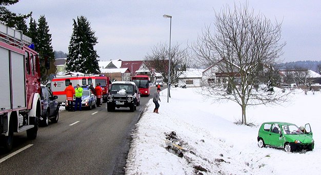 Ins Schleudern geraten und überschlagen (Foto: Hubert Richter)(hr) Ins Schleudern geriet heute am frühen Nachmittag die 48-jährige Fahrerin eines Kleinwagens auf der K 4105 zwischen Schönbrunn und Moosbrunn. Der Wagen überschlug sich, die Frau wurde leicht verletzt.