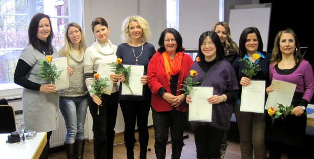 Nach 100 Stunden haben die Frauen ihr Ziel erreicht. Alle bestanden die Prüfung „B1+ für den Beruf“ mit der Note gut oder sehr gut. Dieses Ergebnis wurde natürlich gefeiert. Dazu eingeladen waren auch die deutschen Sprachpartnerinnen.
