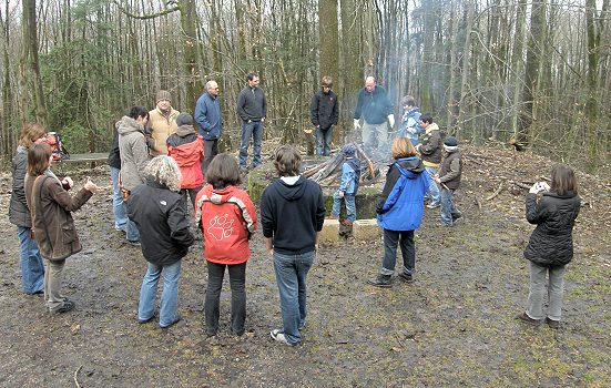 Fröhliches Beisammensein auf dem Katzenbuckel (Foto: privat)(bro) (he) Der vor elf Monaten von Karin Conrath neu gegründete Chor "Right Now!" hat nun sein Logo und seine Website festgelegt. Dieses und den Beitritt neuer Mitglieder nahm man am 13. Februar zum Anlass, ein ausgedehnten sonntäglichen Grillfest auf dem Katzenbuckel zu veranstalten. Mit Kind und Kegel kamen alle zur Freya-Hütte oberhalb der Sprungschanze. Dank der Chormitglieder war für ein üppiges Büfett gesorgt, und über die gegrillten Leckereien freuten sich Jung und Alt. Die Jugend war begeistert über das Lagerfeuer und genoss ihre Freiheit in vollen Zügen. Es war ein fröhliches und unbekümmertes Zusammensein, bei dem man sich näher kam. Auch der Wettergott meinte es gut. Am späten Vormittag kam die Sonne aus dem Hochnebel und sorgte zusätzlich für eine gute Stimmung. Das Fest hat allen Beteiligten so viel Freude gemacht, dass man es im Sommer wiederholen möchte.