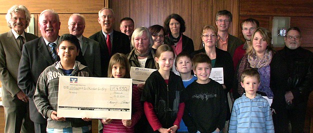 Je 350 Euro nahmen folgende Personen aus den Händen von Schilling und Kley in Empfang: Rebekka Baier für die evangelischen Kindergärten Arche Noah und Regenbogen, Claudia Rupp und Ute Wieder für die katholischen Kindergärten St. Josef, St. Maria und St. Elisabeth, Ursula Teichtmann für die Steige-Grundschule, Lehrer Kimmo Stohner mit jungen Chor-Mitgliedern des Chors der Realschule, Godehard Weithoff mit Kindern der Sing- und Spielschar des Orff-Instrumentariums Singen und Spielen, Armin Blutbacher für den Männergesangverein Concordia Wimmersbach, Armin Muff für den evangelischen Posaunenchor sowie Gretel Brenneis für den Gemischten Chor Lindach und den Chor "Akkordarbeiter". Weitere 350 Euro erhält der Chor der Klasse 1b der Dr.-Weiss-Grundschule unter Leitung von Miriam Back.