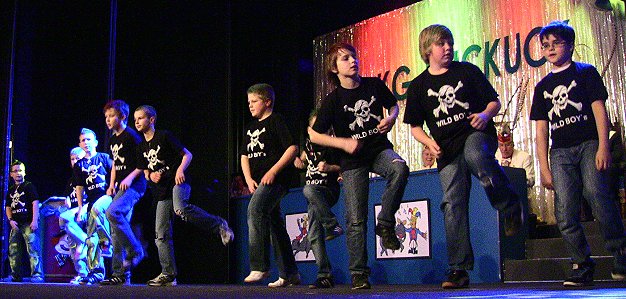 Jubiläumsprogramm mit Narretei und Tanz - Abschied von Kultfiguren Knorrisch und Storrisch Die Junioren der Ranzengarde beim Freestyle als "Wild Boys". (Foto: Hubert Richter)Mehr Bilder (Klicken zum Vergrößern):
