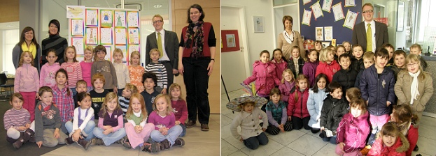 Voller Stolz durften die Schulanfänger der Kindergärten die Kunstwerke am vergangenen Mittwoch in der Hauptgeschäftsstelle Eberbach und der Geschäftsstelle Nord aufhängen. Dort können sie nun zwei Wochen lang bestaunt werden. Als Dankeschön erhielten die Kinder eine kurze Führung durch die Bank und ein kleines Präsent.
