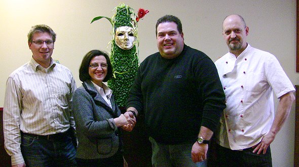 Frauen mit Bart und Männer mit Rock gesucht V.l. Markus Scheurich, Birgit Valerius, Udo Geilsdörfer und Klaus Pfeuffer. (Foto: Claudia Richter)(cr) Erstmals fand im vergangenen Jahr unter dem Motto "Wetten Spaß" eine Rosenmontagswette zwischen der Karnevalgesellschaft Kuckuck (KGK) und Birgit Valerius, Geschäftsführerin des Cafés Viktoria, statt.