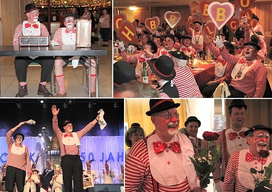Im Nu leert sich der Saal, wird es eng im Foyer. Endlose Reihen von Fans, die ihren Idolen noch einmal die Hand schütteln wollen. Blitzlichtgewitter und lauter Knorrischs und Storrischs. Scharen von Narren haben sich zu Ehren des Duos in Ringelhemd, Schlabberhose, Latz und Clownsmaske geworfen. Als Kostümpaar werden sie weiterleben, als Typen auf der Bühne sind sie aber unnachahmlich.