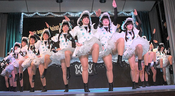 Für die Einstimmung ins Programm sorgten die Lachbachperlchen. Die Gardepimpfe in ihren kessen Uniformkostümen wirbelten mit Feuereifer und sichtlichem Spaß über die Bühne. Drei Jahre alt war die Jüngste, aber mit Herz und Seele dabei.