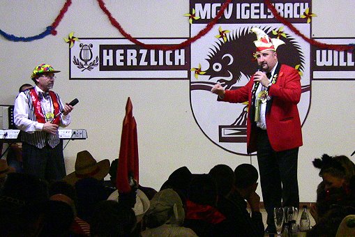 Anders als in den Vorjahren war diesmal die fünfte Anlaufstelle keine Kneipe, sondern die Sängerhalle im badisch-hessischen Ortsteil Igelsbach. Dort hatte der MGV die Gäste in einem närrischen Sitzungsprogramm mit eigenen Kräften und Unterstützung aus Neckargerach und Hirschhorn unterhalten, bis dann ab 23 Uhr nach und nach die "Tour de Bütt" aus Eberbach anrollte.
