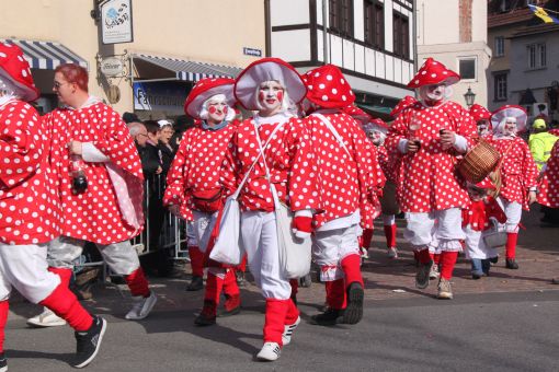 Hirschhorn lag am Nachmittag fest in der Hand der Narren. Ein bunter, stimmungsgeladener Gaudiwurm erstreckte sich mit 98 Gruppen vom Höhenweg - Ersheimer Straße über die Schleusenbrücke durch die Hauptstraße, über den Freien Platz, die Hainbrunner Straße, Hammergasse, Langenthaler Straße und Grabengasse. Auflösung fand der Zug wieder am Freien Platz. Dort moderierten Doris Heckmann und Hans-Jürgen Waibel das Geschehen, wie immer mit viel Humor vom Balkon des Rathauses.