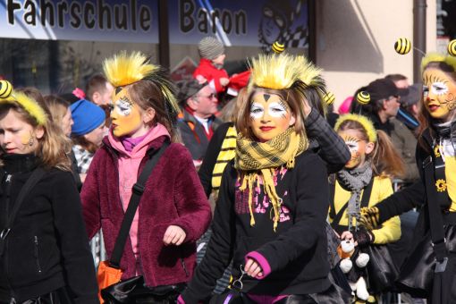 Hirschhorn lag am Nachmittag fest in der Hand der Narren. Ein bunter, stimmungsgeladener Gaudiwurm erstreckte sich mit 98 Gruppen vom Höhenweg - Ersheimer Straße über die Schleusenbrücke durch die Hauptstraße, über den Freien Platz, die Hainbrunner Straße, Hammergasse, Langenthaler Straße und Grabengasse. Auflösung fand der Zug wieder am Freien Platz. Dort moderierten Doris Heckmann und Hans-Jürgen Waibel das Geschehen, wie immer mit viel Humor vom Balkon des Rathauses.