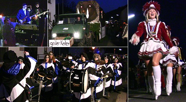 (hr) Zum siebten Mal zog heute Abend lautstark und bunt der Sensbachtaler Fastnachtsumzug über die Ortsstraße zum Gemeindezentrum.