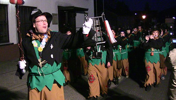 Nach der Aufstellung am südlichen Ortseingang von Unter-Sensbach unter der bewährten organisatorischen Leitung von Zugmarschall Florian Haas setzten sich nach 18.30 Uhr insgesamt 28 Fußgruppen, Motivwagen und Musikkapellen in Bewegung. Viele Teilnehmer kamen aus Sensbachtal selbst, wo die Fastnacht gemeinsam von den Vereinen TSV und MGV organisiert wird, die gestern Abend im Gemeindezentrum zu einem bunten Abend eingeladen hatten. Gruppen aus Reisenbach (Turmwächter), Beerfelden, Waldbrunn, Mossautal, Hetzbach und Vielbrunn bereicherten den Sensbachtaler Gaudiwurm ebenso wie eine Fußgruppe der Eberbacher KG Kuckuck, die als Waldgeister ins "Tal der Liebe" gekommen war. Altbürgermeister Manfred Heiss stellte am Mikrofon die einzelnen Gruppen vor.