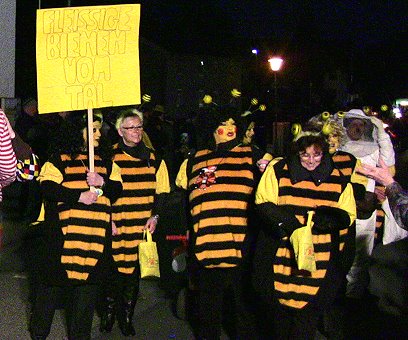 Lauter und bunter Gaudiwurm zum Gemeindezentrum Landfrauen als fleißige Bienen. (Foto: Hubert Richter)Mehr Bilder (Klicken zum Vergrößern):