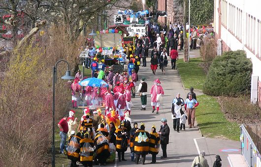 Baustelle tat der närrischen Stimmung keinen Abbruch Zugaufstellung in der Zwingerstraße. (Foto: Hubert Richter)Mehr Bilder (Klicken zum Vergrößern):