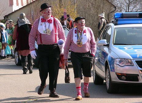 Baustelle tat der närrischen Stimmung keinen Abbruch Knorrisch und Storrisch auf dem Weg zum Umzug. (Foto: Claudia Richter)Mehr Bilder (Klicken zum Vergrößern):