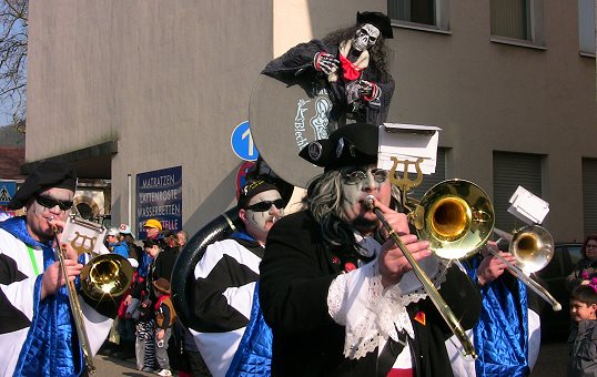 Den Takt am Anfang gab wie immer der Eberbacher Fanfarenzug vor. Musik kam außerdem von der Guggemusik aus Aglasterhausen, der Feuerwehrkapelle Waldkatzenbach und der Guggemusik "Steinachfezza". Nach dem Umzug war bis zum Abend Party auf dem Leopoldsplatz angesagt.
