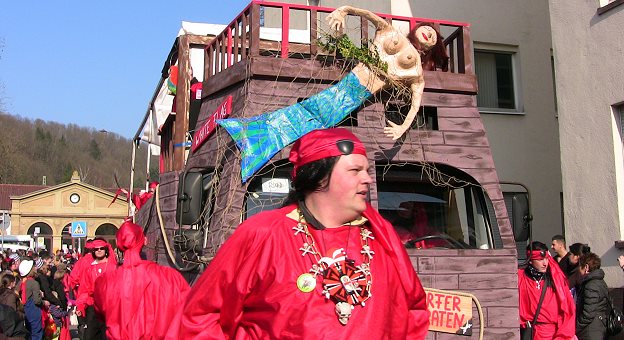 (hr) Zumindest die Wetterbedingungen hätten heute für den großen Umzug der Eberbacher Karnevalisten nicht besser sein können: Die Sonne lachte bei milden Temperaturen. Weniger angenehm war der baustellenbedingte Umstand, dass der Zug in diesem Jahr anders laufen musste als sonst.