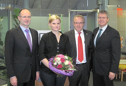 Lena Wendler, Marktbereichsleiter Heinz-Dieter Ihrig und Regionaldirektor Karlheinz Emig. (Foto: privat)(bro) (chs) Bei der Jahresziehung im Lotteriesparen der Sparkasse Neckartal-Odenwald hat die Glücksfee dieses Mal Lena Wendler aus Waldbrunn ausgewählt und ihr einen Gewinn in Höhe von 10.000 Euro beschert. Die Freude war entsprechend groß, als Sparkassendirektor Helmut Augustin und Regionaldirektor Karlheinz Emig den stolzen Betrag überreichten.