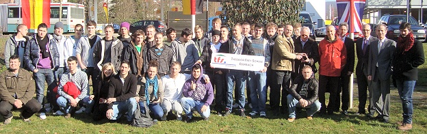 Projekttreffen Beating the Heating an der TFS Partnerschüler aus England und Spanien zusammen mit den Eberbacher Zimmererschülern, den begleitenden Lehrkräften sowie zwei Vertretern des Schulträgers und der Schulleitung der TFS. (Foto: privat)(bro) (rod) In der ersten Märzwoche fanden sich Auszubildende aus England und Spanien als Klimabotschafter an der TFS ein, um dort im Rahmen des europäischen Bildungsprogramms Leonardo da Vinci ihr gemeinsames Klimaschutzprojekt zu verfolgen.