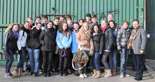 Ein ganzer Tag war außerdem dem Nordirland-Konflikt und der nordirischen Hauptstadt Belfast gewidmet. Die HSG-Gruppe wurde dort von dem Soziologen Dr. Dirk Schubotz (Young Life and Times Director at ARK at Queen’s University Belfast) empfangen, der sich mit Einstellungsmustern von Jugendlichen in dem immer noch nicht nur mentalitätsmäßig in Bezug auf die Konfessionen geteilten Land beschäftigt. Er führte unter anderem durch das protestantische Stadtviertel Sandy Row, indem wie auch in katholischen Vierteln der Untergrundkampf mit seinen terroristischen Elementen immer noch auf überdimensionalen Wandbildern heroisiert wird.