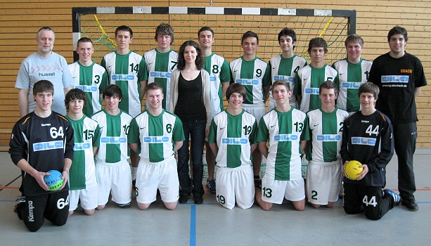 Handball-Jugend im neuen Outfit (Foto: privat)(bro) (hh) Freuen konnte sich die männliche A-Jugend der SGH Waldbrunn/Eberbach in dieser Woche nicht nur über ihren Heimsieg gegen den PSV Heidelberg, sondern auch über einen neuen Satz Trikots. Gesponsert wurde das neue Outfit von der ortsansässigen Firma Dilo. Es wurde der Mannschaft am vergangen Donnerstag von Rebecca Dilo überreicht. In den traditionellen Vereinsfarben auflaufend, hofft die Mannschaft nun auf eine erfolgreiche Qualifikation in die Leistungsklasse.