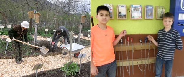 Frühjahrsputz im Heilkräutergarten - Werkzeugdiebstahl bereitet Sorgen (Fotos: privat)(bro) (hg) Im Heilkräutergarten wird derzeit mit Hochdruck gearbeitet. Mit ehrenamtlicher Unterstützung einer Firma aus Brombach brachte BUND-Mitglied Ivana Weger die Wege in Ordnung. Der alte Belag wurde entfernt, eine neue stabile Unterfolie gegen Unterkrautwuchs ausgelegt und mit frischen Häckselgut gemulcht. Mit von der Partie war auch die Biologie-AG des Hohenstaufen-Gymnasiums, die das Beseitigen der alten vertrockneten Stauden in den Beeten übernahm. Einjährige Kräuter wurden gesät und Zwiebeln gesetzt, nur mit dem Auspflanzen empfindlicher Kräuter wird man noch etwas warten müssen.