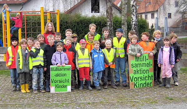 Straßenränder von Unrat befreit (Foto: privat)(bro) (abl) Rund 30 Kinder aus verschiedenen Ortsteilen von Schönbrunn versammelten sich am Samstag, 26. März, um 9 Uhr am Bauhof, um bei der diesjährigen Müllsammelaktion mitzumachen.