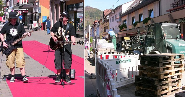 Pflasterarbeiten und Rockmusik in der Innenstadt (Fotos: Claudia Richter)(cr) Musik auf dem roten Teppich gab es gestern Vormittag in der Eberbacher Innenstadt zu hören.