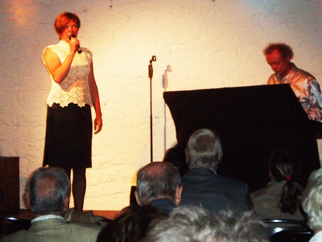 Für den musikalischen Genuss sorgte die Darmstädter Chansonette Petra Bassus. Sie trat zum dritten Mal in Eberbach auf. Begleitet wurde sie von dem Pianisten Roland Erben. Bassus unterhielt das Publikum mit Liedern von Edith Piaf und Hildegard Knef. Auch Chansons von Jaques Brel, Charles Trenet und Astor Piazzolla waren zu hören. Mit Temperament und ausdrucksstarker Stimme begeisterte sie die Zuhörer. Erläuterungen zu verschiedenen Liedern, lustige Gedichte und humorvolle Überleitungen zu einzelnen Chansons ließen zwei Stunden Unterhaltung zu schnell vorübergehen.