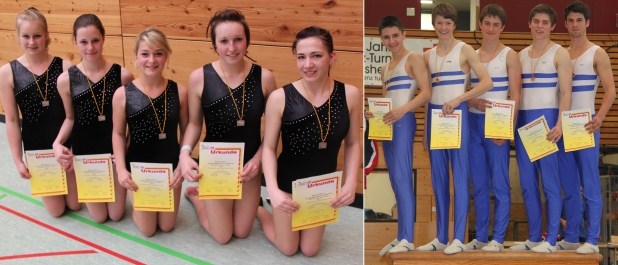Ebenso erfreulich war das Ergebnis der Jungs, offene Klasse P5-P9 Gerät-Sechs-Kampf, mit Pierre Moreira, Fabio Broghammer, Lucas Brenneis Dominik Köhler und Lukas Jaeger. Nach spannenden Wettkämpfen gingen die Turner des TVE mit dem 1. Platz unter drei Mannschaften als Bezirksmeister hervor. Beide Mannschaften der offenen Klasse haben sich somit für das Landesfinale am 15. Mai in Iffezheim (Baden-Baden) qualifiziert.