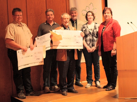 Verleihung des neuen Familienpreises (Foto: privat)(bro) (hk) Zum ersten Mal seit seiner Wahl zum neuen "Kapitän" des "OWK-Schiffs" in 2010 leitete Karl Ohlemüller die große Mitgliederversammlung des Gesamt-Odenwaldklubs, die am 9. April in Bruchsal stattfand.