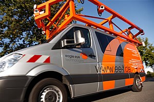 Mit Adleraugen durch Eberbach (Foto: eagle eye technologies)(hr) (stve) Das silber-orange Messfahrzeug mit den Kameras auf dem Dach, das Mitte April für wenige Tage durch Eberbach fährt, wird sicherlich vielen auffallen. Das Fahrzeug der Firma eagle eye technologies GmbH ist im Auftrag der Stadtverwaltung unterwegs und richtet den scharfen Blick seiner Kameras auf die Straßen und das Straßeninventar.