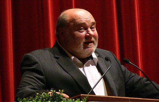 Unterhaltsamer Festabend bildete den Auftakt zu den Jubiläumsfeiern Andreas Körber (FC Hirschhorn) gratulierte im Namen der Nachbarvereine. (Foto: Hubert Richter)Mehr Bilder (Klicken zum Vergrößern):