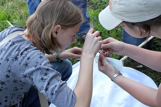 Mit weißen Tüchern im Dienste der Forschung unterwegs (Foto: privat)(bro) (owk) Sollte man in nächster Zeit im Wald und oder auf dem Feld Menschen begegnen, die mit weißen Tüchern hantieren, so muss man sich über deren Geisteszustand keineswegs Sorgen machen: Es sollte sich um Zeckensammler handeln, die im Dienste der Forschung unterwegs sind.