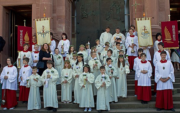 Nachdem die Kinder der Pfarrgemeinde St. Josef, mit denen man sich gemeinsam auf dem so genannten "Kommunionweg",auf diesen Tag vorbereitet hatte, bereits am vergangenen Sonntag Erstkommunion feiern (wir berichteten) konnten, war es heute für die Kommunionkinder aus Stadtgemeinde soweit.