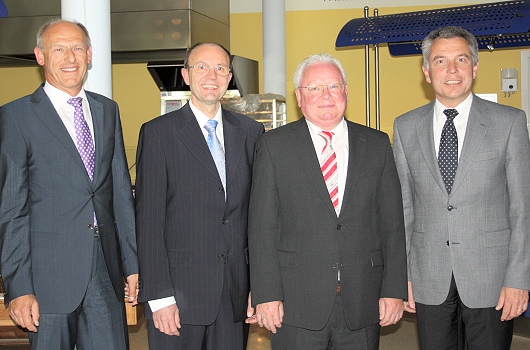 Betriebsleiter Klaus Eiermann verabschiedet sich in den Ruhestand Trafen sich zum Stabwechsel in Sinsheim (v. l.): GRN-Geschäftsführer Rüdiger Burger, der neue Betriebsleiter der GRN-Klinik Martin Hildenbrand, der scheidende Betriebsleiter Klaus Eiermann und Landrat Stefan Dallinger. (Foto: GRN)(bro) (stm) Die GRN-Klinik Sinsheim hat einen neuen Betriebsleiter: Bereits seit dem 1. April steht Martin Hildenbrand (55) an der Spitze des ehemaligen Kreiskrankenhauses.