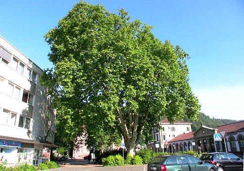 Aus Sicherheitsgründen sind Arbeiten am Baumriesen nötig (Foto: Claudia Richter)(cr) Die Platane am Bahnhofsplatz ist einer der imposantesten Bäume in der Eberbacher Innenstadt. Aber der stattliche Laubbaum mit der riesigen Krone bereitet seit einigen Jahren Probleme.