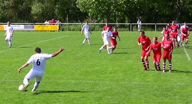 Die Mannschaft der SG Rockenau hatte einen starken Anfang, bereits nach vier Minuten landete der Ball nach einem schönen Schuss des Rockenauer Stürmers am Eberbacher Pfosten. Doch sechs Minuten später kam dann auch der SV zu seinem ersten Angriff. Armin Piralic köpfte das Leder nach einer Ecke um Haaresbreite über das Tor. Genau drei Minuten später war es der ehemalige Rockenauer Angreifer Murat Sahin, der den Ball mit voller Wucht gegen die Latte köpfte, nachdem Lanzalotto und Weißmann die Aktion schön vorbereitet hatten. Die nächste Tormöglichkeit ergab sich in der zehnten Minute, als ein Seitfallzieher nur knapp über das Tor ging. Der SV hatte nun Chancen im Minutentakt. Nach einer Viertelstunde Spielzeit war es wieder Murat Sahin, der eine Großchance zu leichtsinnig vergab. Eberbach belagerte nun den Rockenauer Strafraum, und den Gästen gelang es kaum noch, sich zu befreien. Erst in der 25. Minute gelang es dem Nachbarn vor dem Eberbach Tor aufzutauchen, doch dieser Angriff wurde im direkten Gegenzug mit dem 1:0 durch Xhemal Koragi bestraft. Die Rockenauer brauchten einige Zeit, um sich zu erholen, aber in der 30 Minute hatte man dann die erste wirkliche Torgelegenheit. Doch der starke Michael Goebel wehrte einen Kopfball aus fünf Metern grandios mit dem Fuß ab. Kurz vor der ersten Hälfte kam es dann zu einem harten Foul an Schuler, der darauf leider das Feld verlassen musste. Die zweite Hälfte eröffnete Korag mit einem schönen Kopfball, doch auch der Gästekeeper hatte heute einen guten Tag erwischt. In der 50. Minute testen die Rockenauer abermals den starken Michael Goebel, der einen strammen Freistoß mit einer Glanzparade abwehrte. Rockenau kam jetzt wieder besser in Spiel zurück. In der 60. Minute grätschten die Gäste knapp am Ausgleich vorbei. Die Schlussviertelstunde wurde noch einmal hektisch, zuerst vergab Hans-Philip Weißman, frei vorm Tor stehend, die 2:0-Führung, und im Anschluss gelang den Rockenauern der 1:1-Ausgleichstreffer nach einem Kopfballtor. Zu diesem Zeitpunkt war Nußloch an Eberbach in der Tabelle vorbeigezogen, und man hätte den Aufstieg vorzeitig aus der Hand gegeben. Darum gab die Mannschaft in den letzten Minuten alles, und acht Minuten vor Schluss gelang es Stefan Bier, den 1:2-Führungstreffer zu erzielen. Danach war der Knoten geplatzt, und Murat Sahin stellte mit Treffer drei und vier den 4:1-Endstand her.