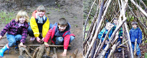„Am Montag haben wir uns um 7.45 Uhr an der Bushaltestelle unserer Schule getroffen und sind mit dem Bus bis zur Schranke im Gretengrund gefahren. Dort haben uns die Maxikinder gezeigt, wie man den Wald begrüßt. Anschließend haben wir uns an die Waldregeln erinnert und sind dann losgelaufen. Am Waldklassenzimmer angekommen, fanden wir den Bach am tollsten. Wir haben mit Ästen, Steinen und Schlamm den Bach gestaut und Dämme und Brücken gebaut. Dabei sind einige von uns ganz schön nass geworden. Unsere Lehrerin Frau Weber und die Erzieherinnen Frau Storck und Frau Messel haben glücklicherweise ein Feuer in der Hütte gemacht. Dort haben wir unsere Hosen, Socken und Jacken getrocknet. Das hat natürlich eine Weile gedauert bis die Sachen wieder trocken waren. In dieser Zeit haben wir ein Quiz gemacht mit Fragen aus der Natur. Anschließend durfte jeder eine Waldmedaille töpfern und sie mit Sachen, die wir rund ums Waldklassenzimmer gefunden haben, verzieren, also mit Gräsern, kleinen Steinen, Blättern und Rinde. Danach haben wir zusammen gevespert und uns lustige Geschichten vom „Osterhasen“ erzählt. Jeder von uns baute dann noch ein Nest aus Moos, kleinen Zweigen, Rinde und Gräsern. Alle haben später Schokoladeneier in den Nestern gefunden. Wir haben uns auch bedankt und einen Waldbegrüßungsrap gesprochen und mit Holzinstrumenten (Klanghölzer aus Ästen), die wir gefunden und nicht abgerissen haben, musiziert. Zum Schluss hat uns Frau Messel noch eine Geschichte vorgelesen. Wir haben noch alles sauber gemacht und sind dann zur Schranke gelaufen und haben uns wieder mit einem Lied vom Wald verabschiedet. Mit dem Bus sind wir wieder bis zur Schule bzw. zum Kindergarten gefahren. Vielen Dank an den Kindergarten Arche Noah für diesen tollen Tag.“