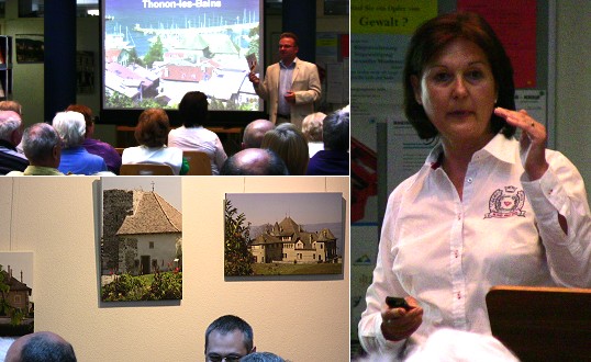 Informativer Vortrag und Fotoausstellung (Fotos: Hubert Richter)(hr) Mit Thonon-les-Bains in Savoyen (Frankreich) unterhält Eberbach seit 1961 eine Partnerschaft. Es ist eine der ältesten deutsch-französischen Städtepartnerschaften überhaupt, und zum 50-jährigen Jubiläum gibt es in diesem Jahr ein reichhaltiges Programm (wir berichteten). Heute Abend wurde Thonon-les-Bains im Eberbacher Rathaus vorgestellt. Neben einem informativen Vortrag wurde auch eine Fotoausstellung über die Stadt am Genfer See eröffnet.