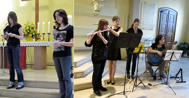 Aufbruch in ein selbstbestimmteres Leben Links: Stefanie Franek und Anna Vogl tragen Gedanken zum Gottesdienstthema vor (v.l.). Rechts: Schülerinnen des Vorbereitungsteams begleiten die Gottesdienstbesucher auf ihren Instrumenten. (Fotos: privat)(bro) (pm) Die Tage der Abiturienten am Hohenstaufen-Gymnasium Eberbach sind gezählt. Die Schulzeit der 13. Klasse neigt sich mit dem Mündlichen Abitur am 31. Mai ihrem Ende zu. Daher hatte die Fachschaft Religion zu einem Gottesdienst für alle Abiturienten, ihre Eltern, Angehörige und Freunde eingeladen.