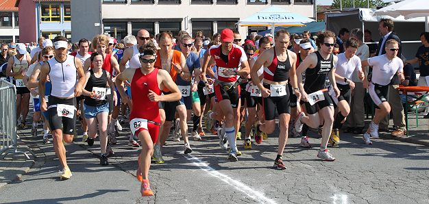 Lokalmatadoren dominieren Beerfeldener Duathlon (Foto: privat)(hr) (uho) Landrat Dietrich Kübler und Familie Bühler-Kowarsch seitens der Stadt Beerfelden konnten bei angenehmen Temperaturen am Sonntag, 22. Mai, 120 Teilnehmer auf die Strecke des Beerfelder Duathlons schicken.