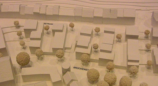 Zwei Projekte mit Lebensmittelmarkt und Parkplätzen Zum Vergleich: Der Siegerentwurf des städtebaulichen Wettbewerbs vom Büro Tusker & Ströhle aus dem Jahr 2008. (Foto: Hubert Richter)Mehr Bilder (Klicken zum Vergrößern):