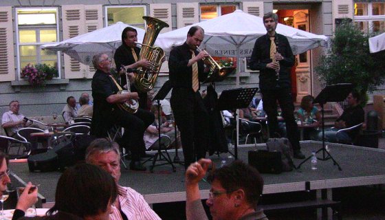 Tausende Besucher strömten in die Innenstadt Die "Oldtime Jazz Connection" spielte am Freitagabend auf dem Alten Markt. (Foto: Hubert Richter)Mehr Bilder (Klicken zum Vergrößern):