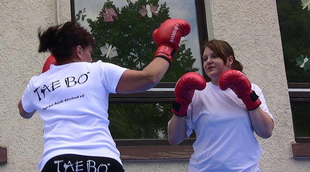 Tausende Besucher strömten in die Innenstadt Eine Tae-Bo-Vorführung beim Shownachmittag am Samstag im Dr.-Weiß-Schulhof.(Foto: Hubert Richter)Mehr Bilder (Klicken zum Vergrößern):