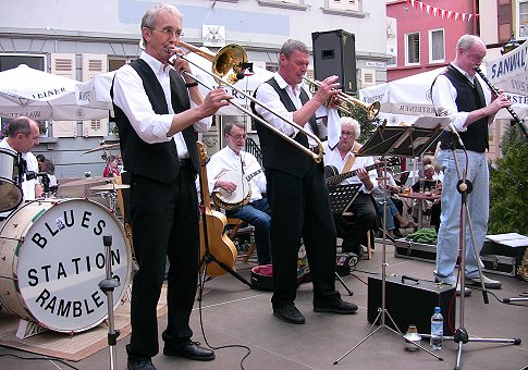 Tausende Besucher strömten in die Innenstadt Die "Blues Station Ramblers" jazzten am Samstagabend auf dem Alten Markt. (Foto: Hubert Richter)Mehr Bilder (Klicken zum Vergrößern):