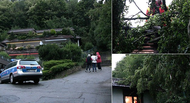 Mehrfamilienhaus am Itterberg beschädigt (Fotos: Hubert Richter)(hr) Dass in Eberbach in vielen Bereichen zu nahe an den Wald gebaut wurde, zeigte sich heute Abend wieder einmal bei einem Vorfall am Itterberg.