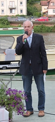 Spektakuläres Abendprogramm in Zwingenberg Bürgermeister Peter Kirchesch begrüßte die zahlreichen Gäste zur Brückensegnung. (Foto:Wörner)Mehr Bilder (Klicken zum Vergrößern):