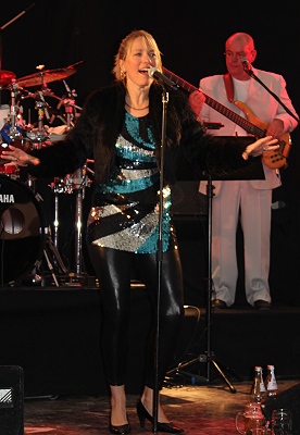 Spektakuläres Abendprogramm in Zwingenberg Sängerin der Mike Nail Band. (Foto:Wörner)Mehr Bilder (Klicken zum Vergrößern):